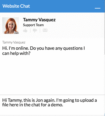 The file is in the chat transcript for both the visitor and the agent to see. Multiple files can be uploaded during the chat as needed.